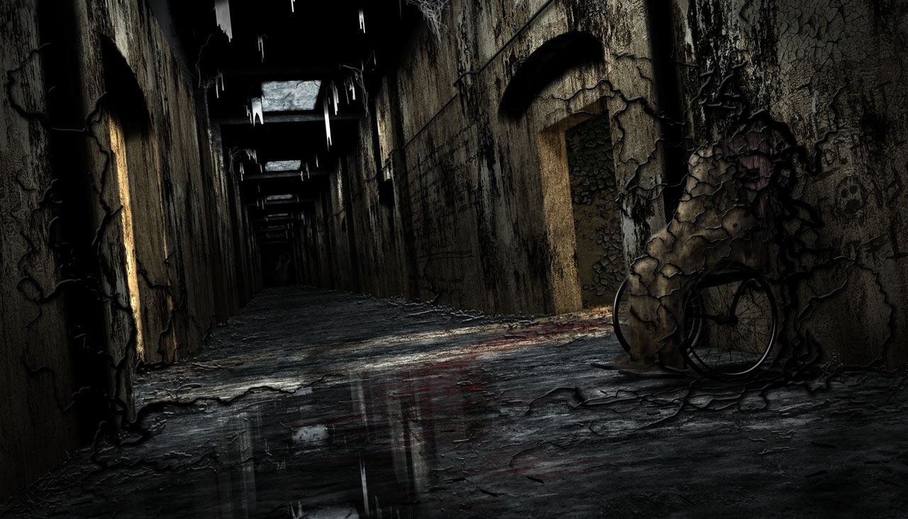Concept for a dilapidated, deranged hallway.
